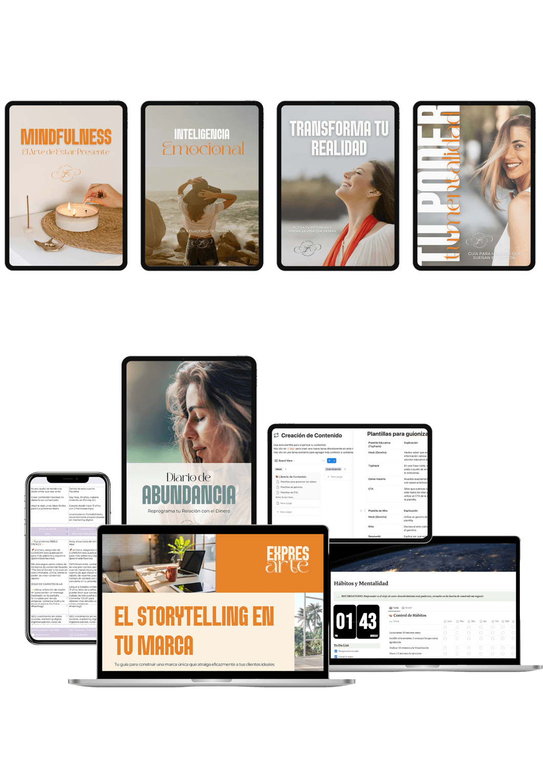 Usa las guías, plantillas y reflexiones para trabajar en tu mentalidad, organizarte mejor y empezar a expresarte con confianza.