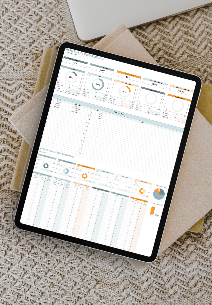 La puedes usar todos los meses. Solo duplicas la pestaña “Presupuesto MES” y listo. Los tabs de Fondo de Paz y Tracker de Deudas son continuos, así puedes ver tu progreso a largo plazo.
